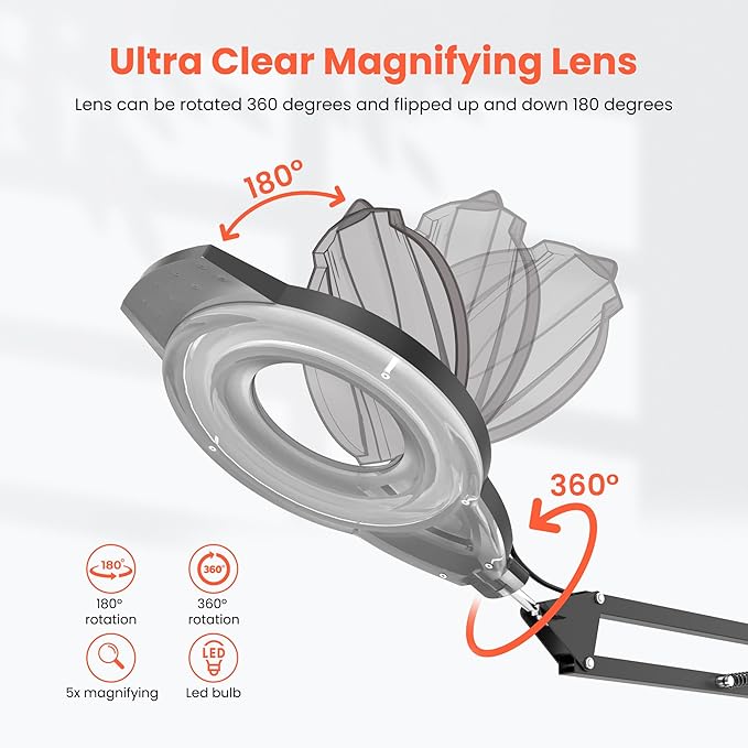 - 5X Magnifying Lamp:Adjustable brightness and a soft glow ensure comfortable use while protecting your eyes, revealing skincare details effortlessly. Perfect for pairing with your favorite facial tools like pore extractors or face sculpting tools.