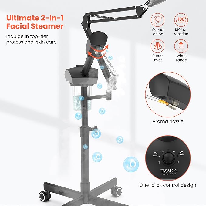 TASALON Professional 2-in-1 Facial Steamer, Ozone Face Steamer with 5X Magnifying Lamp Deep Cleaning Pore,Hot Mist Face Steamer Salon Spa Beauty Skin Care Equipment, Aroma Therapy Nozzle Included
