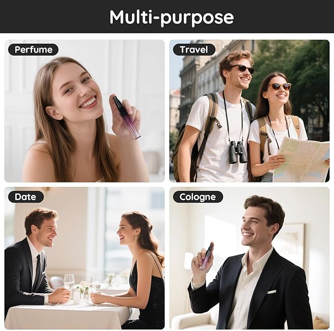 - Multi-application: Ideal for perfume, fragrances, cologne, face spray, toiletries product, various water-based liquids in mind. An ideal cosmetic accessory for daily activity, especially for traveling and outgoing