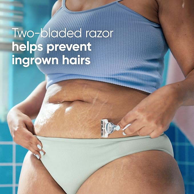 - RAZOR: These razors have a patented Protection Bar helps guard skin against shave irritation. The razor has a small head and a precision trimmer on the back of the blades to help reach tricky areas