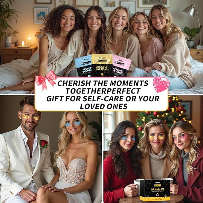 - Refreshing and Soothing Eye Relaxation Gift for Women & Men: This set includes 9 pairs of 24K Gold Eye Masks, 8 pairs of Retinol Eye Patches, and 8 pairs of Caffeine Eye Masks.Perfect as a Christmas gift, stocking stuffer, Valentine's Day surprise, birthday present, or bachelorette party favor! If you're not 100% satisfied, let us know, and we'll make it right!