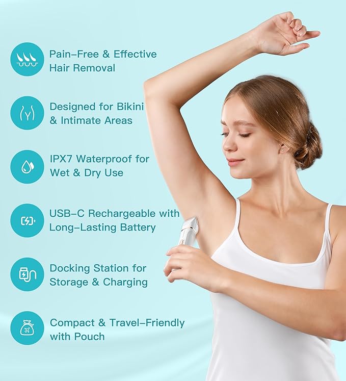 - 【5. Compact & Travel-Friendly – Perfect Women’s Personal Groomer】 Lightweight bikini razor for women pubic hair weighs just 8.2 oz. Sleek size (5.7") fits travel bags. Comes with pouch, manual, cleaning brush, and safety protections. Portable and discreet—your grooming must-have anywhere.
