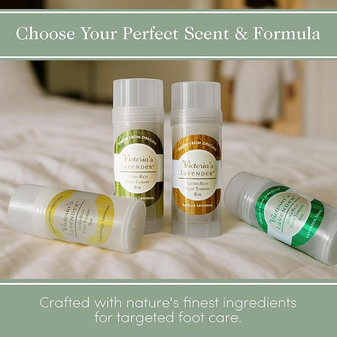 - SPA-LIKE FOOT CARE IN A TRAVEL-FRIENDLY STICK: Compact and lightweight, Victoria's Lavender Heel Balm Stick combines luxurious foot care with portability. Designed for men and women, it ensures you can maintain soft, hydrated heels wherever you go. Pamper your feet with the benefits of premium ingredients and a soothing lavender mint fragrance.