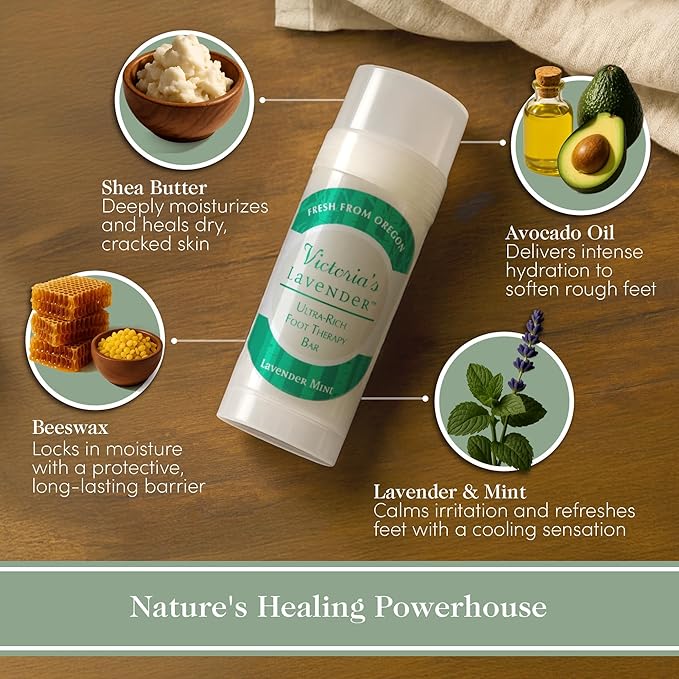 - CRAFTED BY A TRUSTED BRAND FOR NATURAL FOOT CARE: Victoria's Lavender is known for its nature-inspired products and commitment to quality. This heel stick balm transforms your routine into a relaxing, spa-like experience. The soothing lavender mint scent adds a refreshing touch while effectively treating dry, cracked heels.