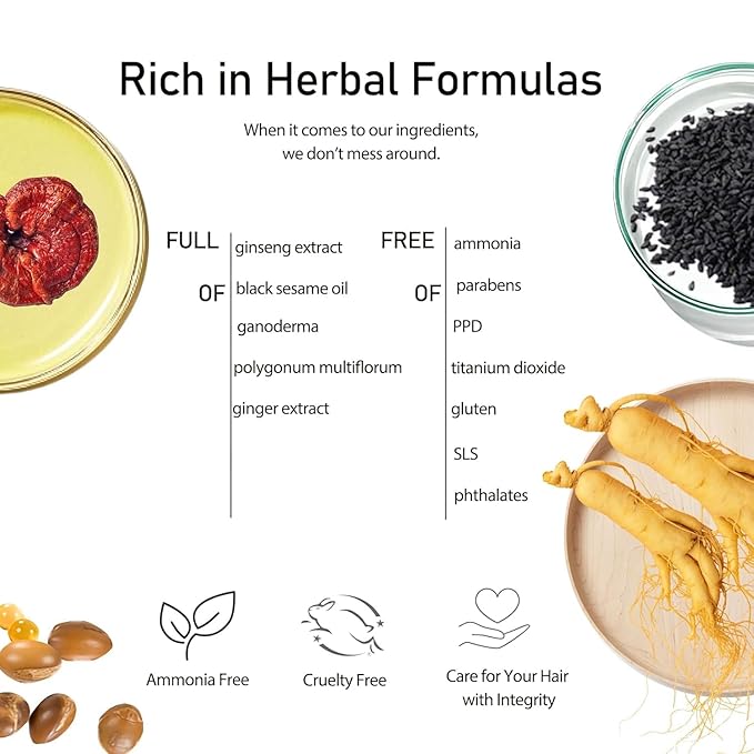 - [RICH IN HERBAL FORMULA] This color shampoo hair dye is formulated with herbal ingredients, free from harsh chemicals, mild and non-irritating.The hair color shampoo leaves your hair lustrous, soft and smooth, and prevents drying. It's your time to experience hassle free hair dyeing.