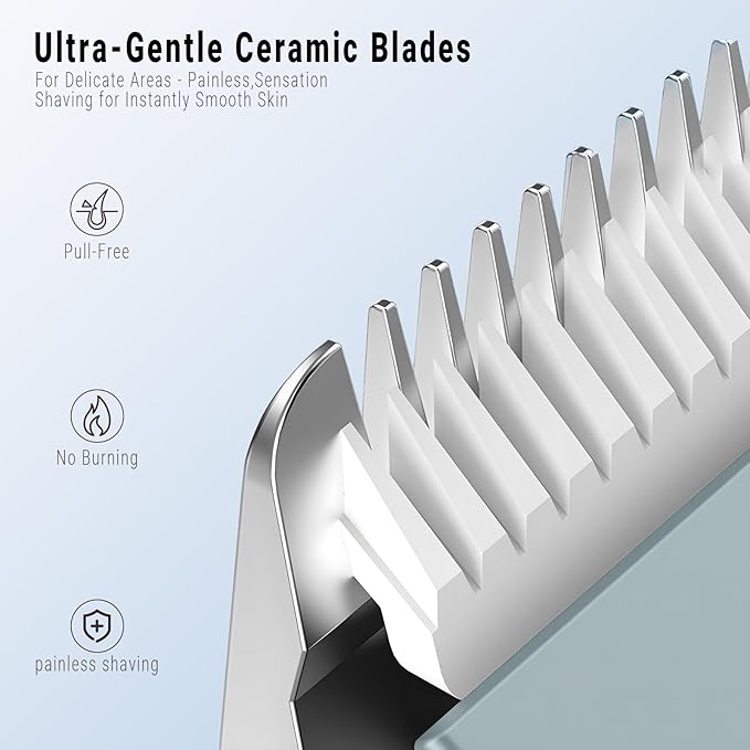 - 【Hypoallergenic Bikini Razor | Painless & Smooth】Engineered as a hypoallergenic bikini razor, this shaver for women guarantees zero tugging or irritation. Its medical-grade ceramic blades glide seamlessly over sensitive skin and private areas, offering a painless pubic hair trimmer experience that erases redness and bumps for silky results.